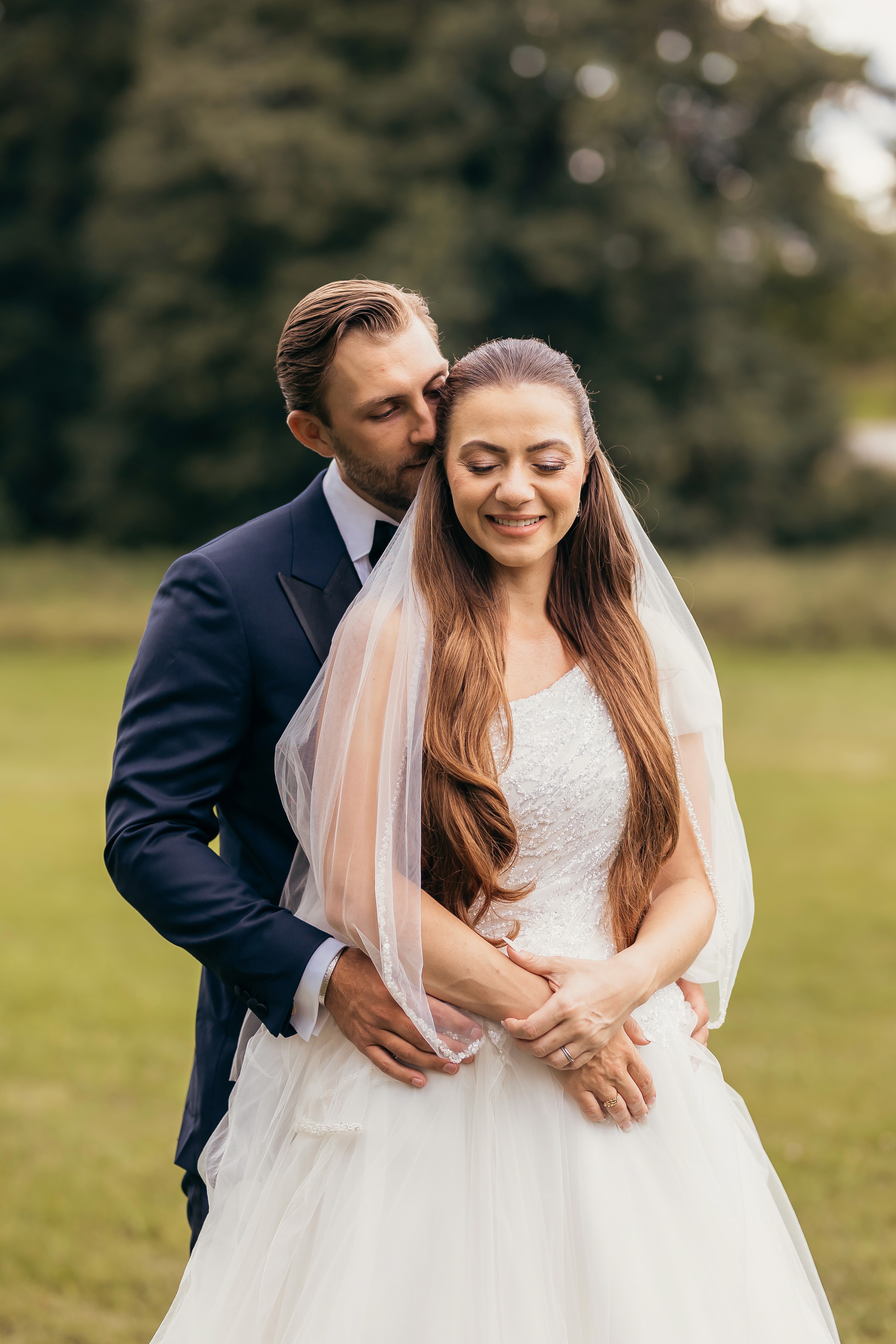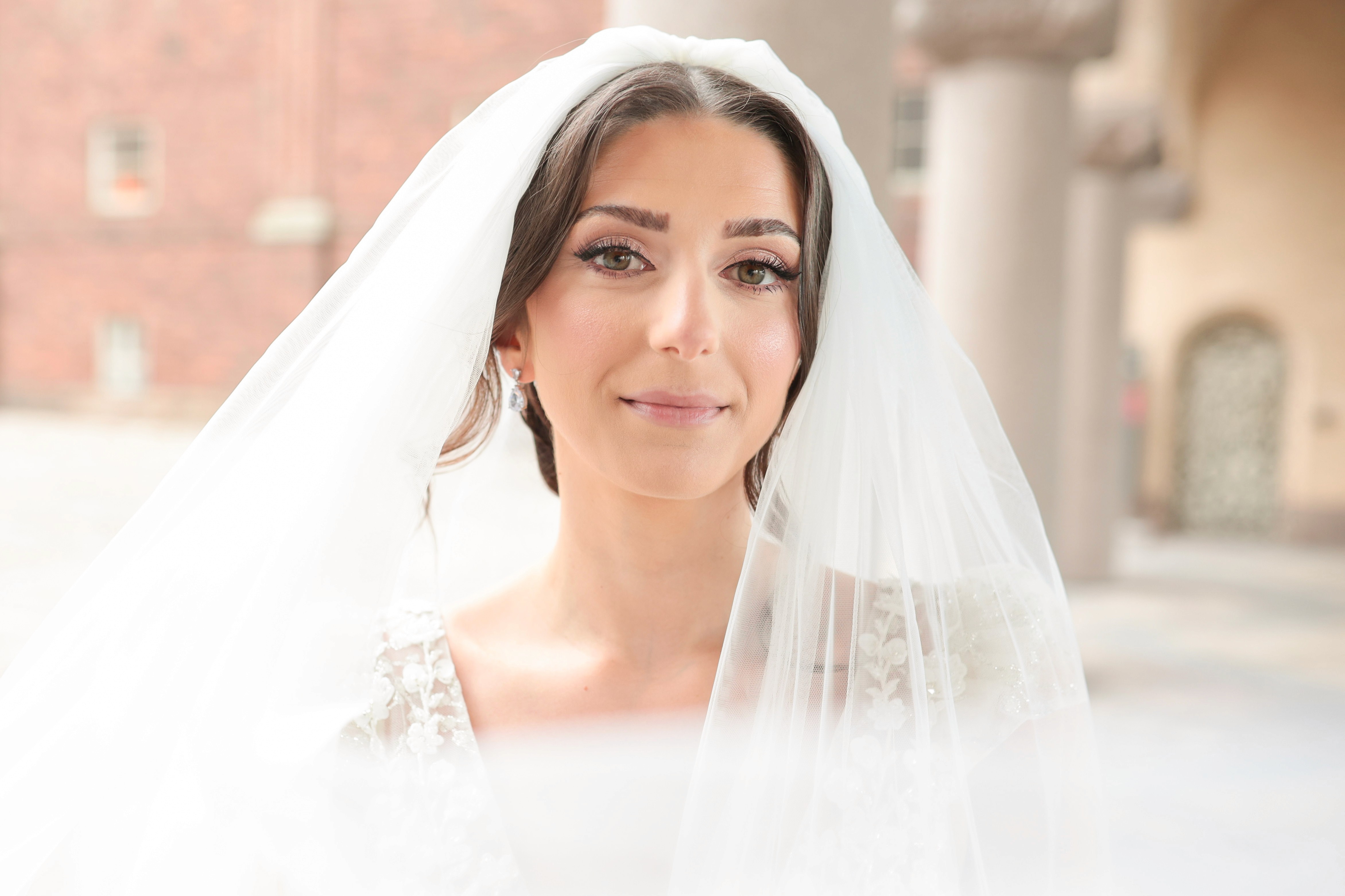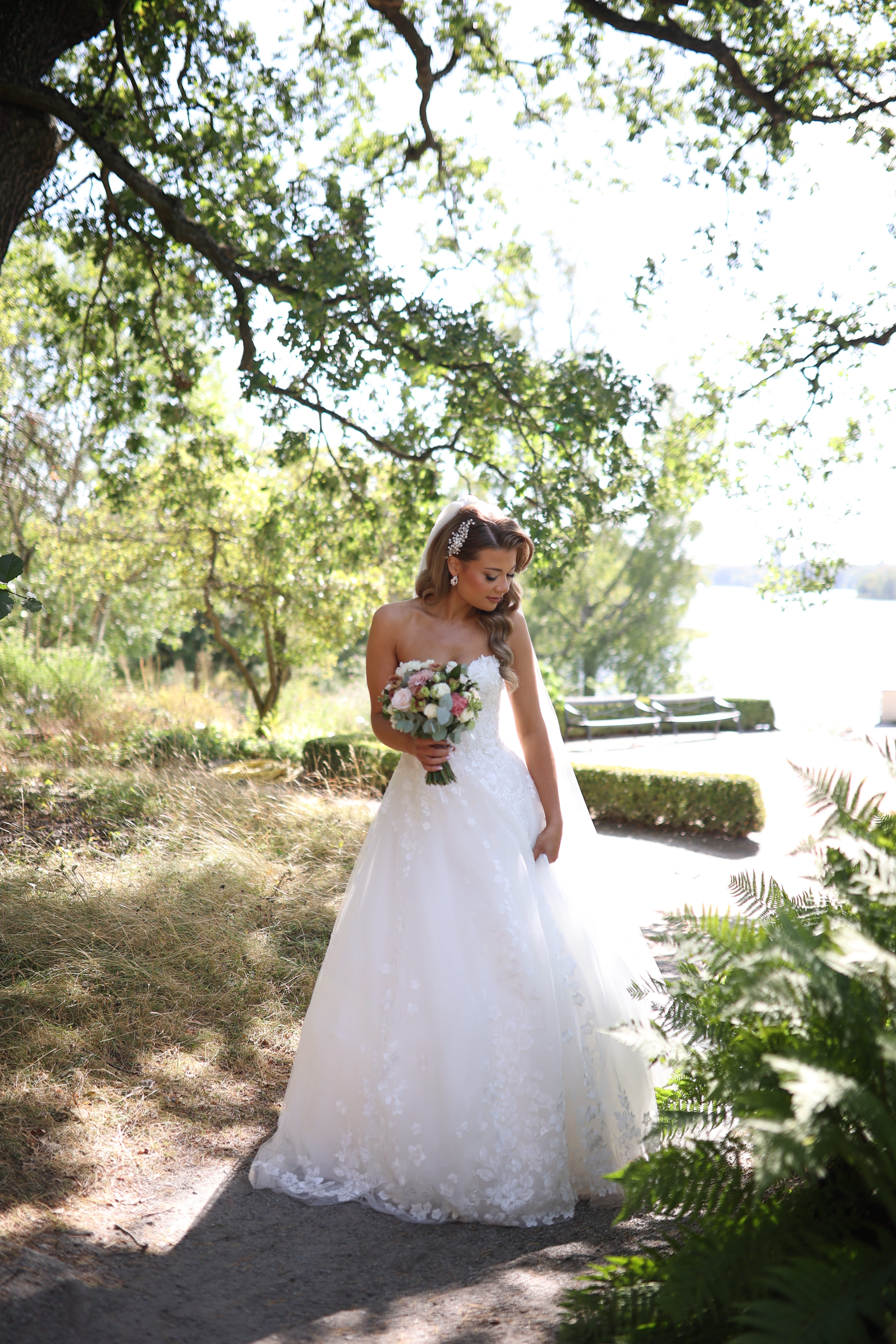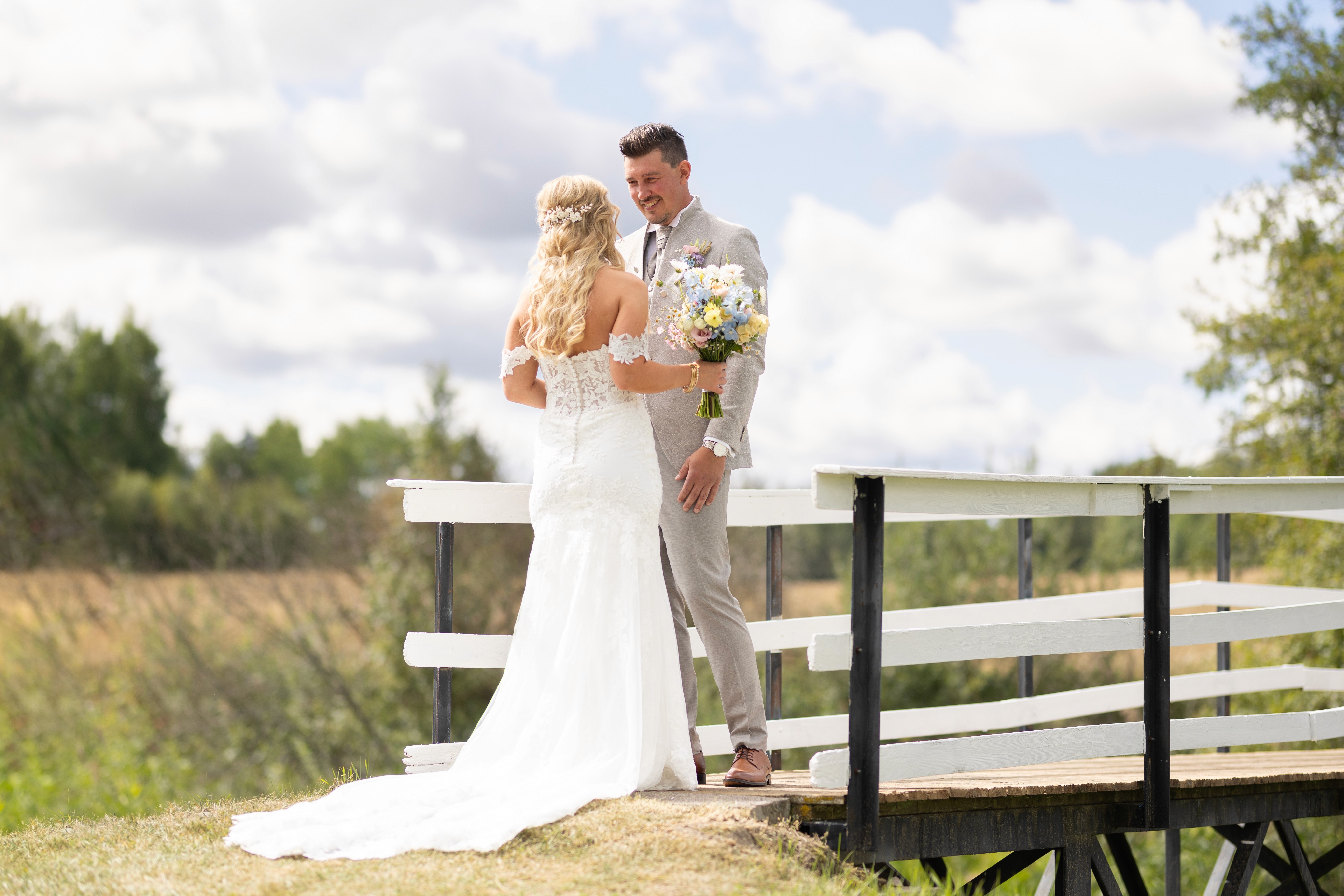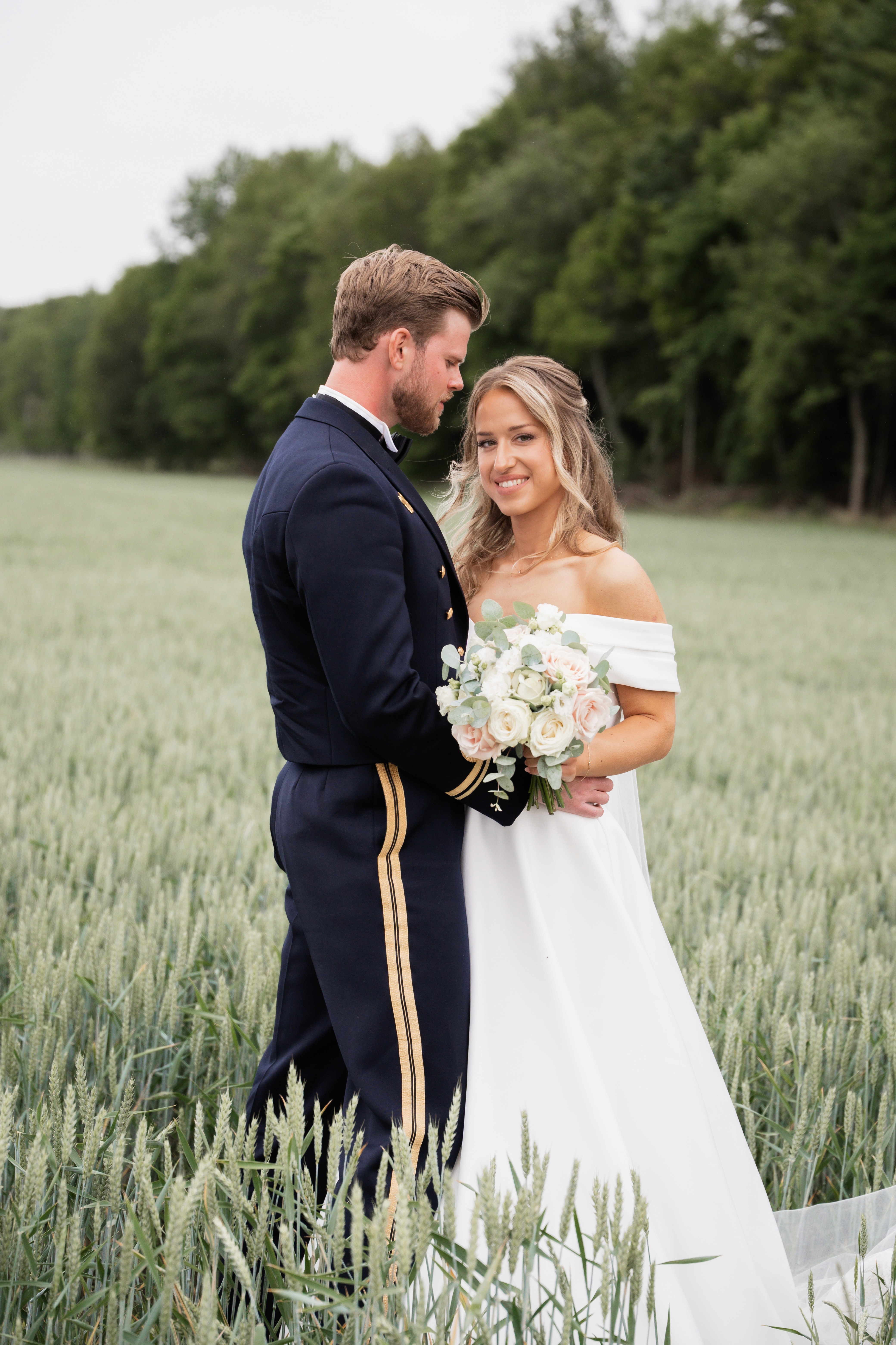 Porträtt av brudparet, vigsel, brudfölje och familj, gratulationer/mingel i samband med vigsel, middag med tal samt efterföljande fest, skärning av tårtan och första dansen.
